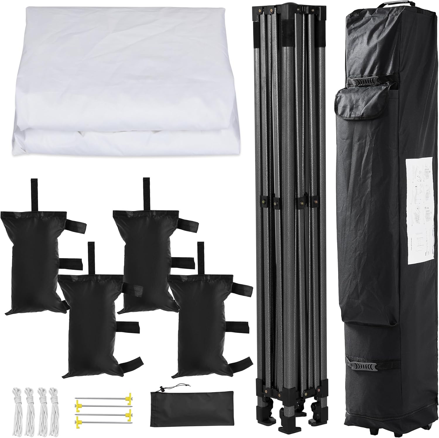 But that’s not all – this heavy-duty canopy comes complete with a wheeled carry bag for easy transportation and storage, 4 sandbags for added stability on windy days, and 4 stakes for secure anchoring on various terrains. Setting up and securing your canopy has never been easier!